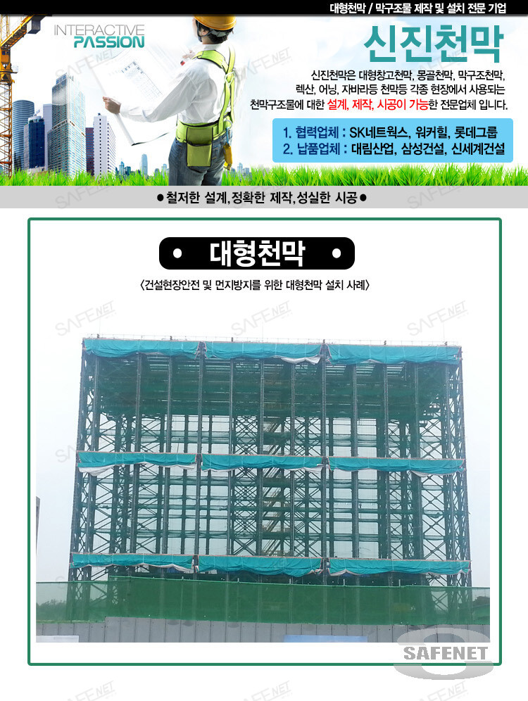 - 용도 : 추락낙하물방지용안전천막 & 비산먼지방지용천막