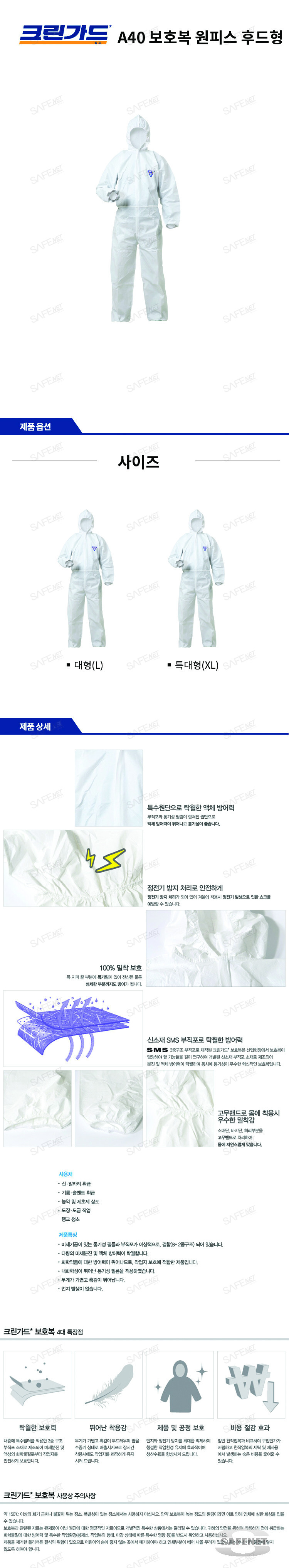 크린가드 A40 보호복/원피스후드형 (흰색)