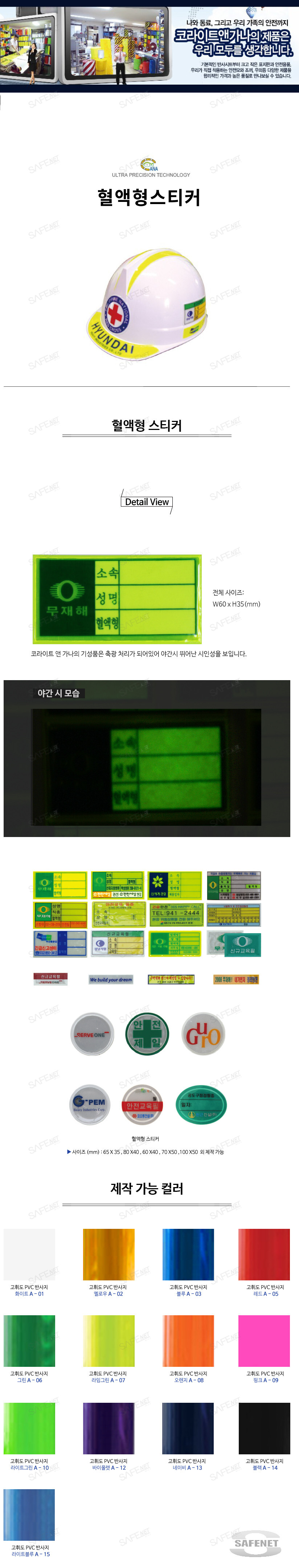 안전모용 혈액형스티커(반사)