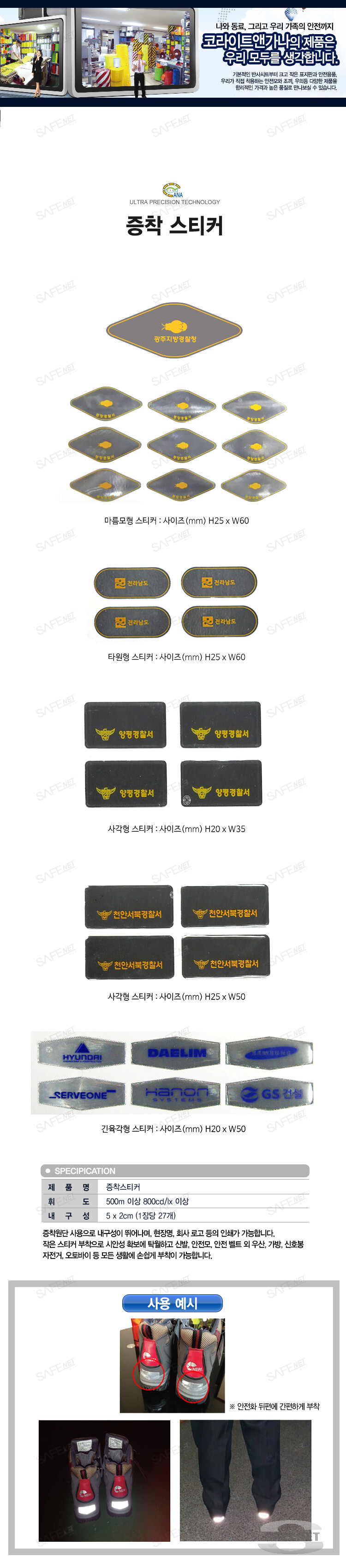 작은 스티커 부착으로 시인성 확보에 탁월하고 신발, 안전모, 안전벨트 외 우산, 가방, 신호봉,자전거, 오토바이 등 모든 생활에 손쉽게 부착이 가능합니다.
