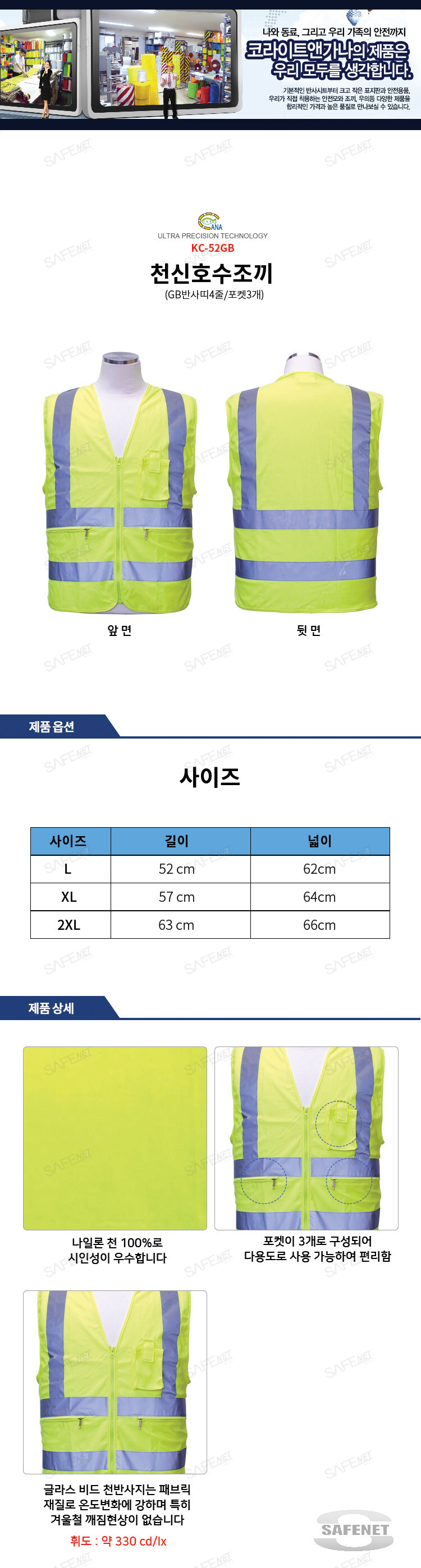 형광색 천신호수조끼 KC-52GB (GB반사띠4줄/포켓3개)