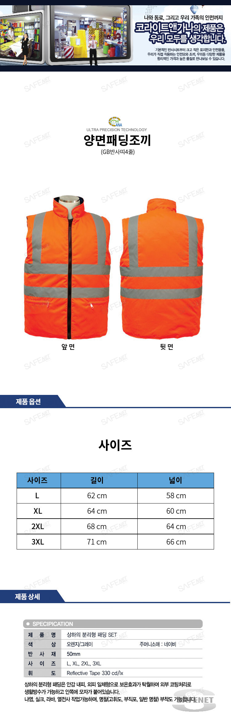 규격 주황색 / 패딩 / GB반사띠4줄