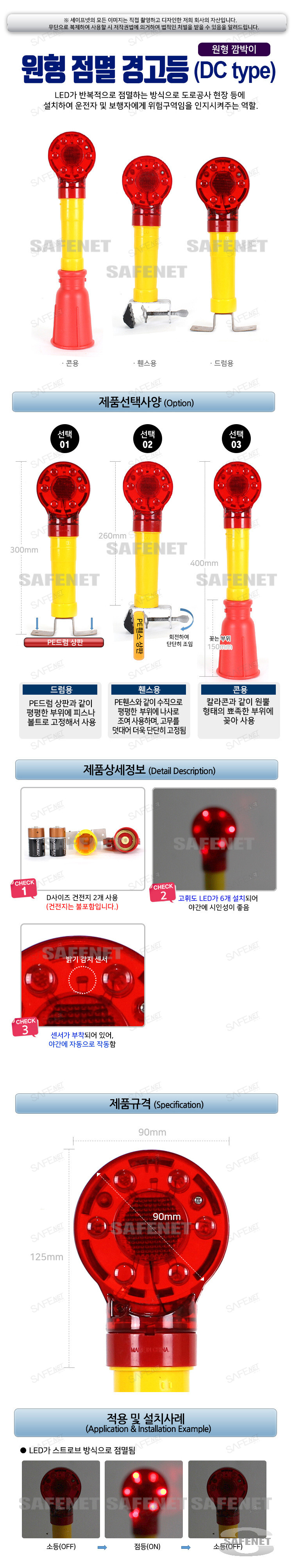 규격 D형건전지 2개사용 / Φ95 X L120mm / LED 6개 / LED가 일괄점멸 방식으로 작동