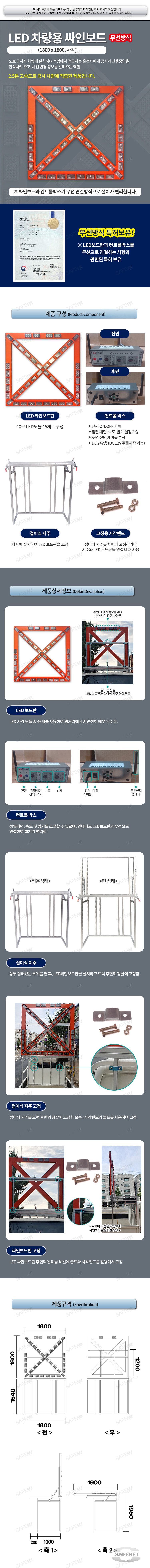 규격 1800 X 1800mm / 40구 LED 사각모듈 46개로 구성 / DC24V / 2.5톤 차량용 / 무선방식