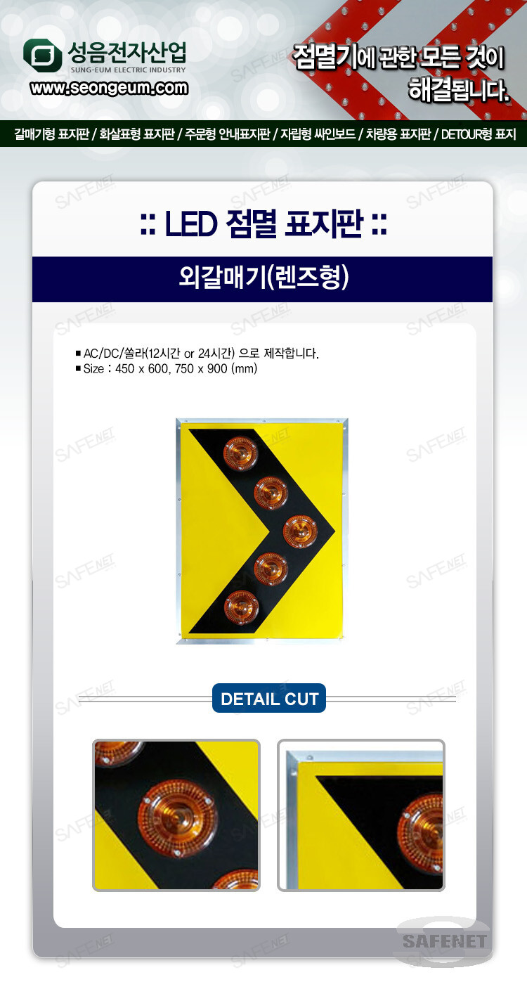 LED 점멸 표지판 외갈매기(렌즈형)