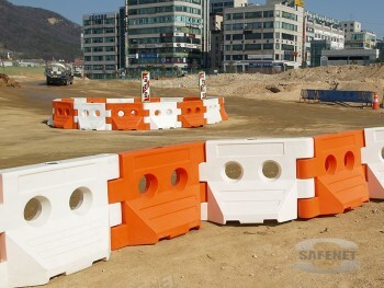 - 시인성이 우수한 백색과 오렌지색 방호벽입니다.