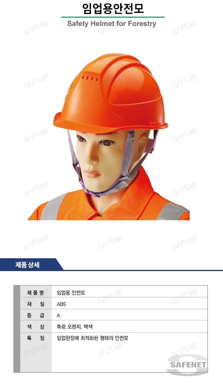 규격 ABS재질 / A등급 / 축광오렌지색,백색 / 임업현장에 최적화된 형태의 안전모