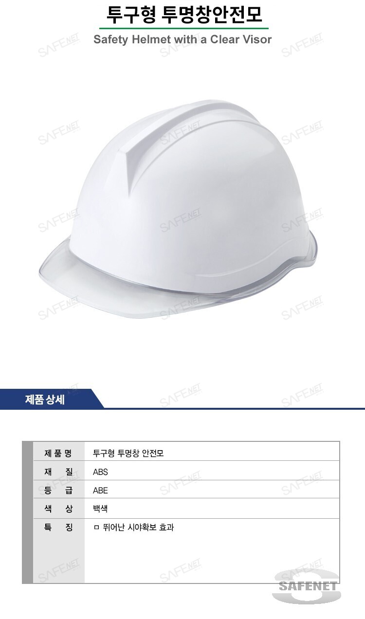 규격 투구형 / ABS재질 / ABE등급 / 헬멧색상-백색 / 창색상-투명 / 뛰어난 시야확보 효과