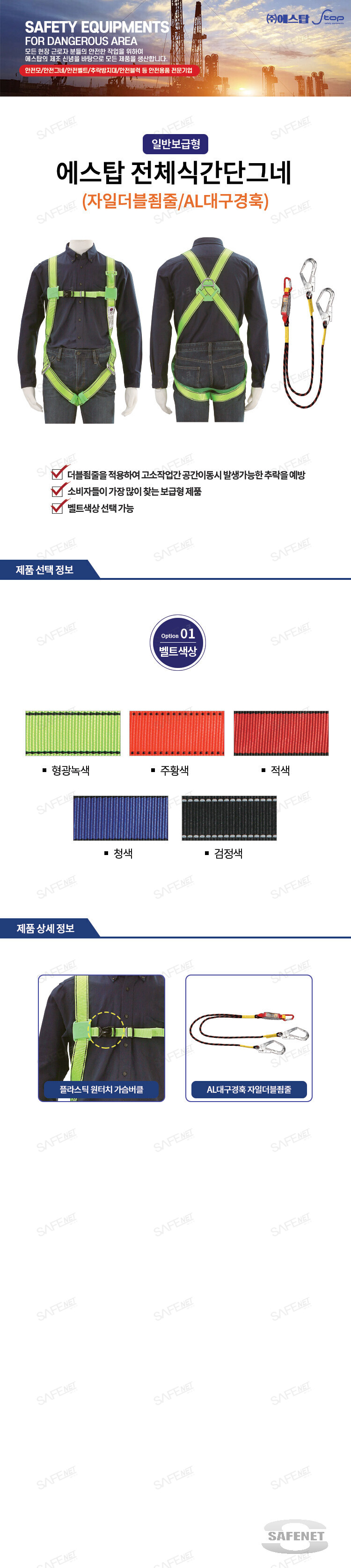 규격 자일더블죔줄 / AL대구경훅 / 플라스틱 원터치 가슴버클 / 벨트색상 선택가능