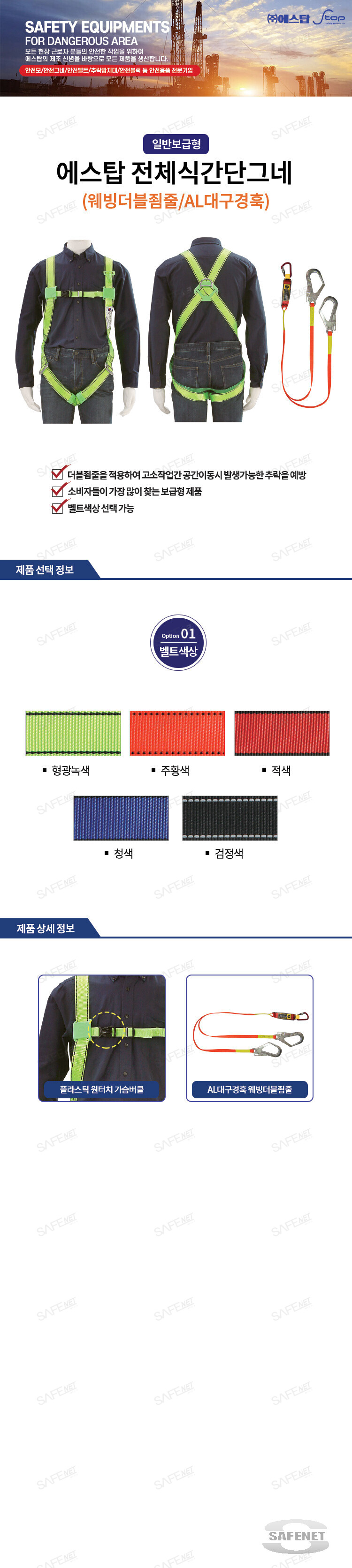 규격 웨빙더블죔줄 / AL대구경훅 / 플라스틱 원터치 가슴버클 / 벨트색상 선택가능