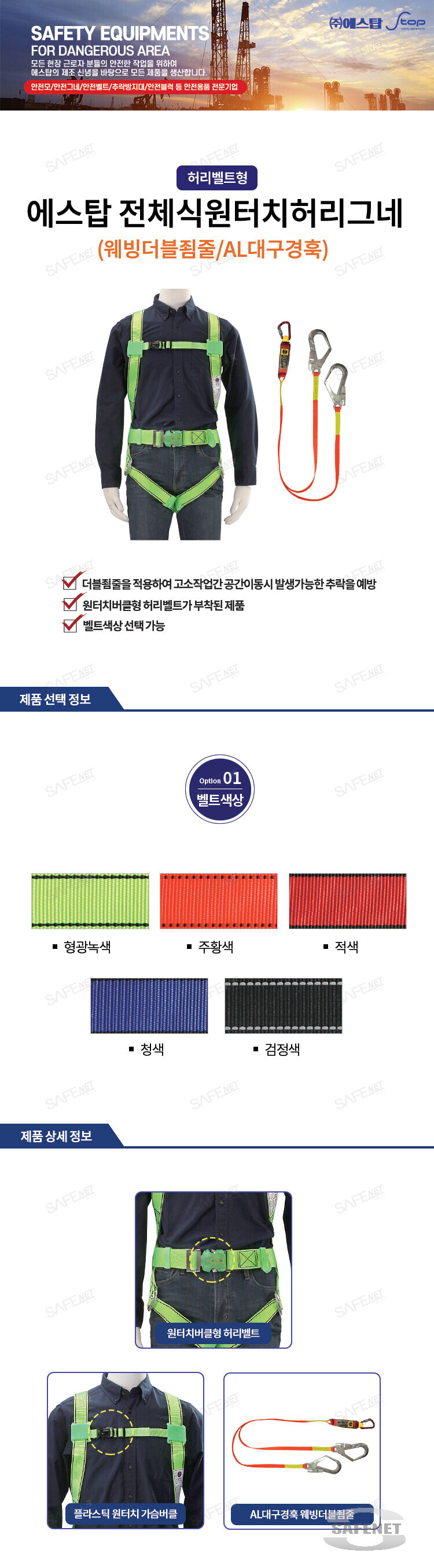 규격 원터치허리벨트 / 웨빙더블죔줄 / AL대구경훅 / 플라스틱 원터치 가슴버클 / 벨트색상 선택가능