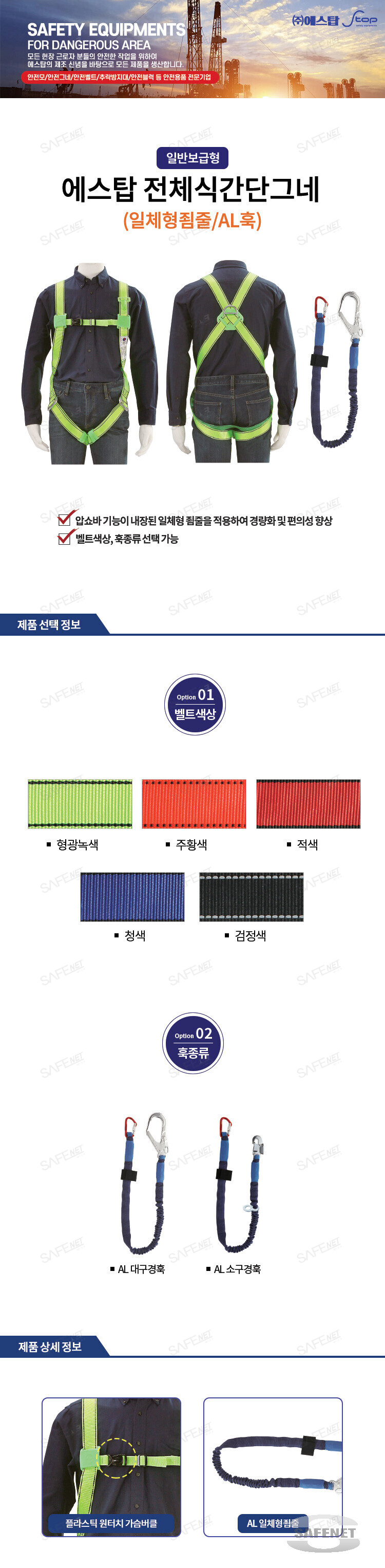 규격 일체형죔줄 / AL훅 / 플라스틱 원터치 가슴버클 / 벨트색상 선택가능 / 훅구경 선택가능