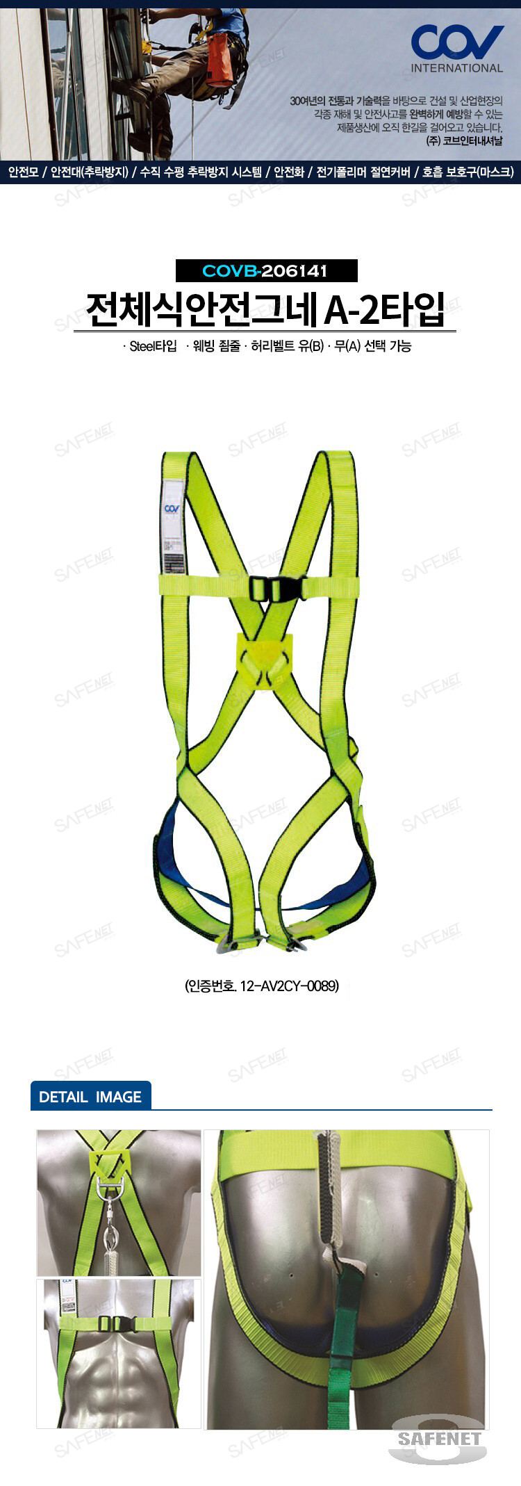 1. 모델명 : COVB-206141 2. 규격 : 웨빙 죔줄, Steel타입 3. 제조사 : 코브인터내셔날 4. 원산지 : 한국