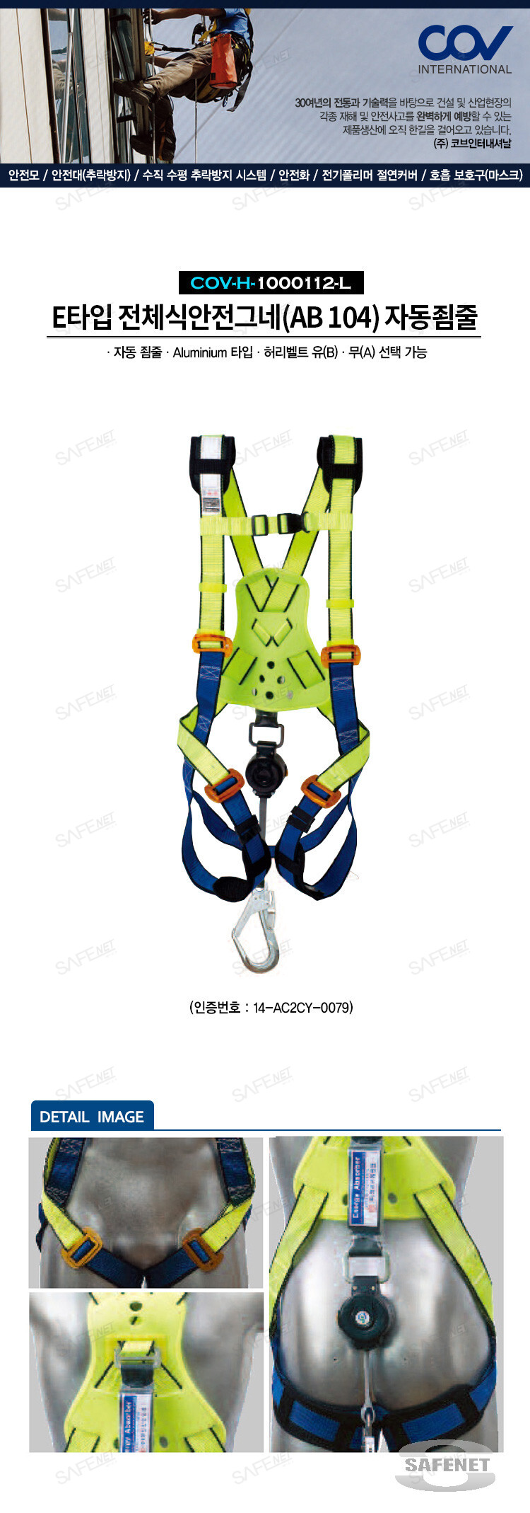 규격 자동죔줄 / AL타입 / 허리벨트 유(B)·무(A) 선택 가능