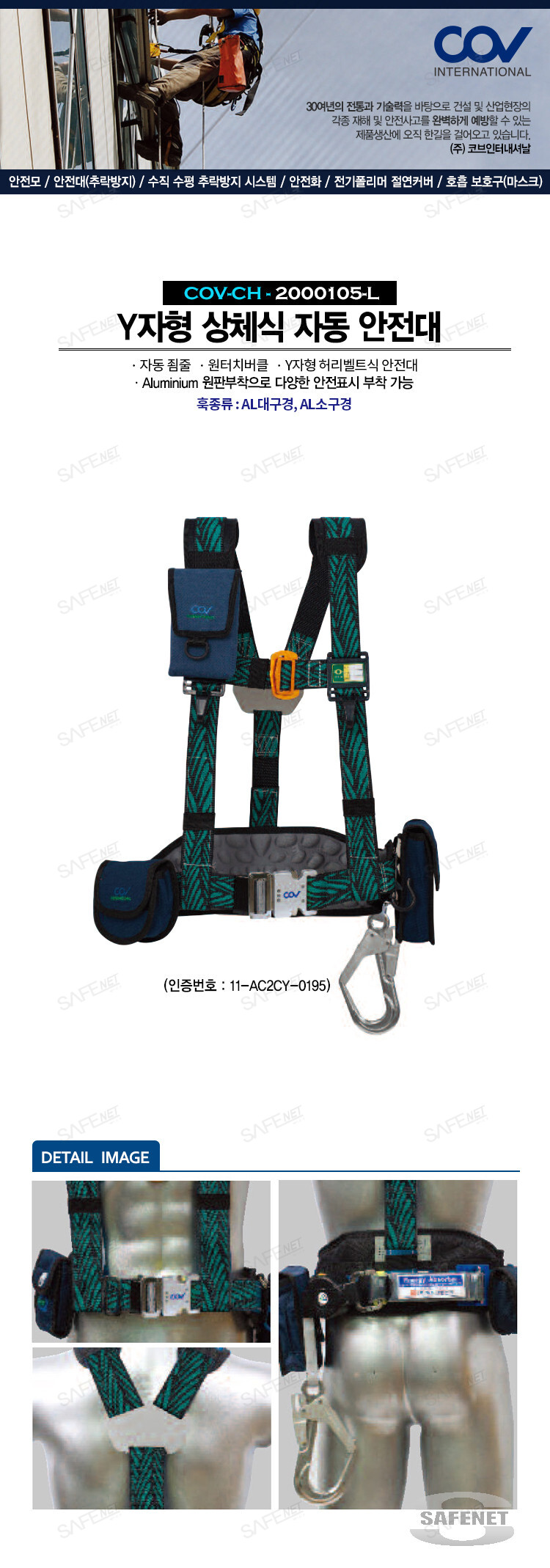 Y자형 상체식안전대 자동죔줄/AL훅