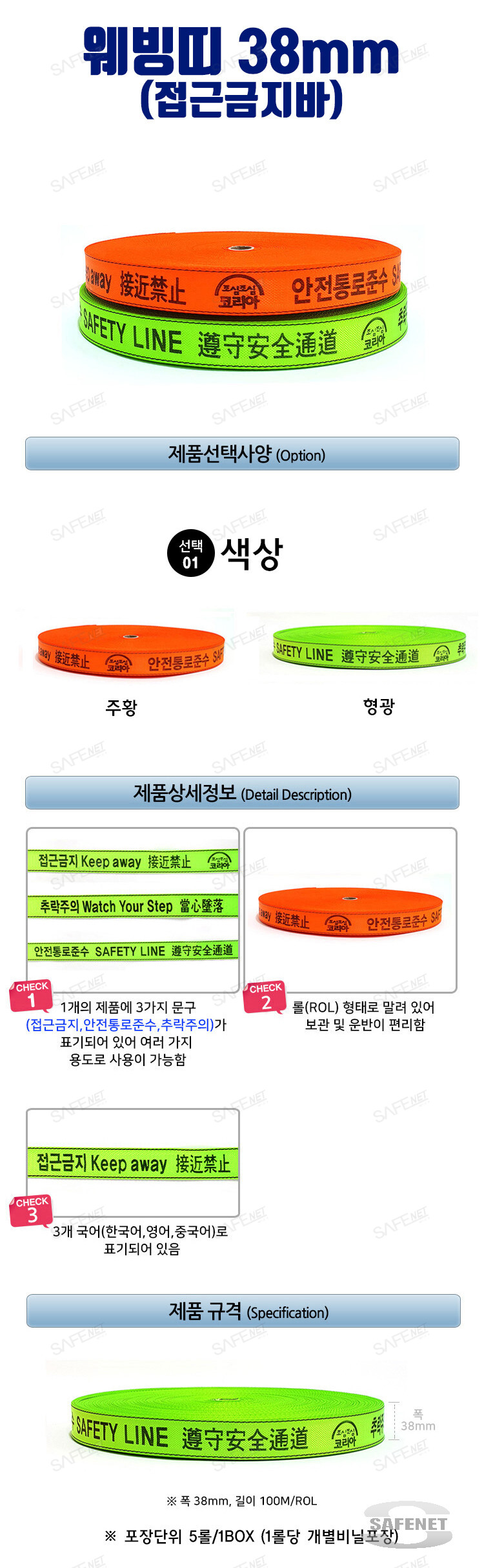 규격 폭 38mm X 길이 100M, 색상 : 주황색/형광색