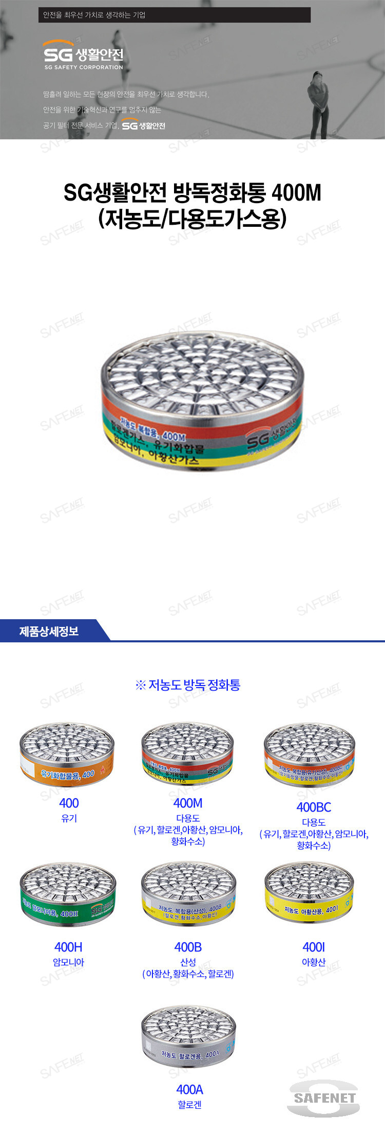 SG생활안전 방독정화통 400M (저농도/다용도가스용)
