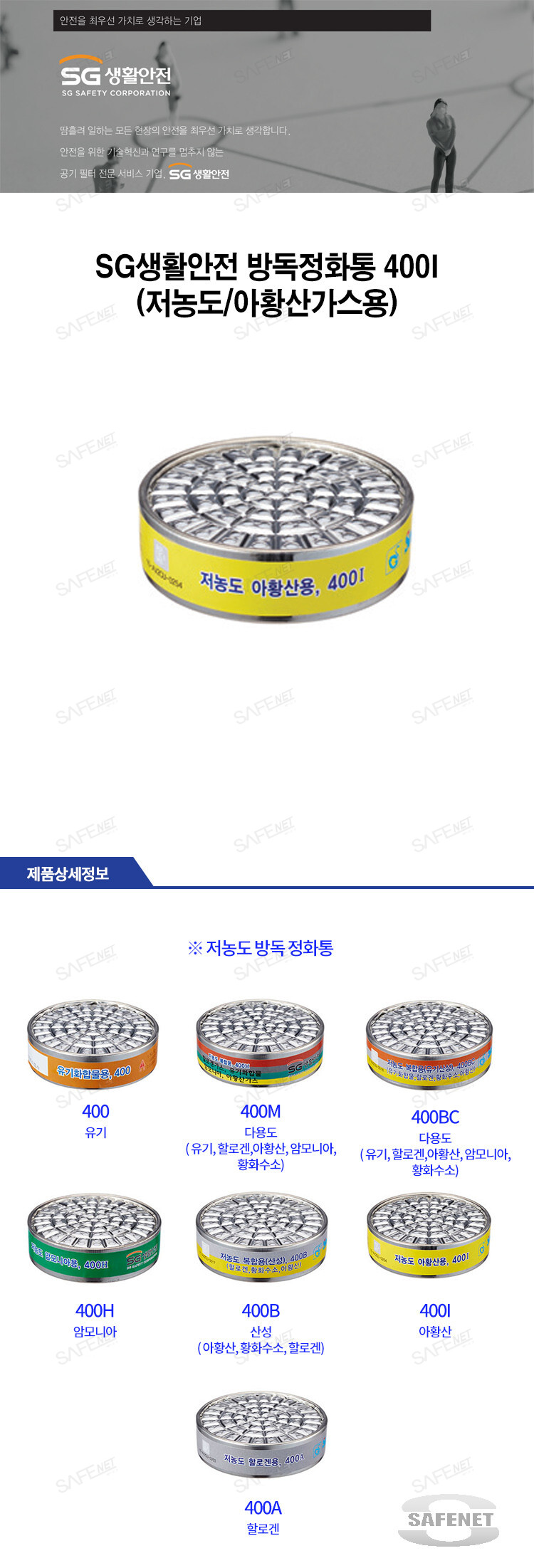 SG생활안전 방독정화통 400I (저농도/아황산가스용)