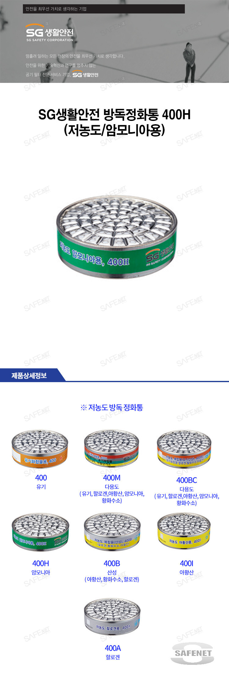 SG생활안전 방독정화통 400H (저농도/암모니아용)