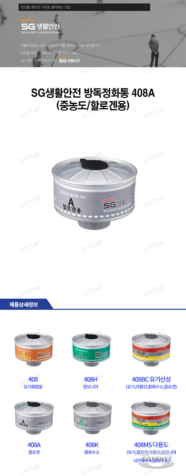 SG생활안전 방독정화통 408A (중농도/할로겐용)