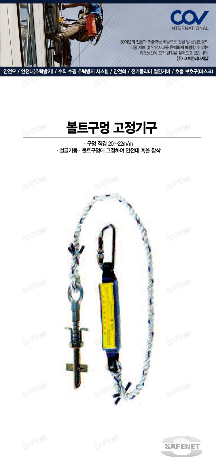 - 철골기둥, 볼트구멍에 고정하여 안전대 훅을 장착함
