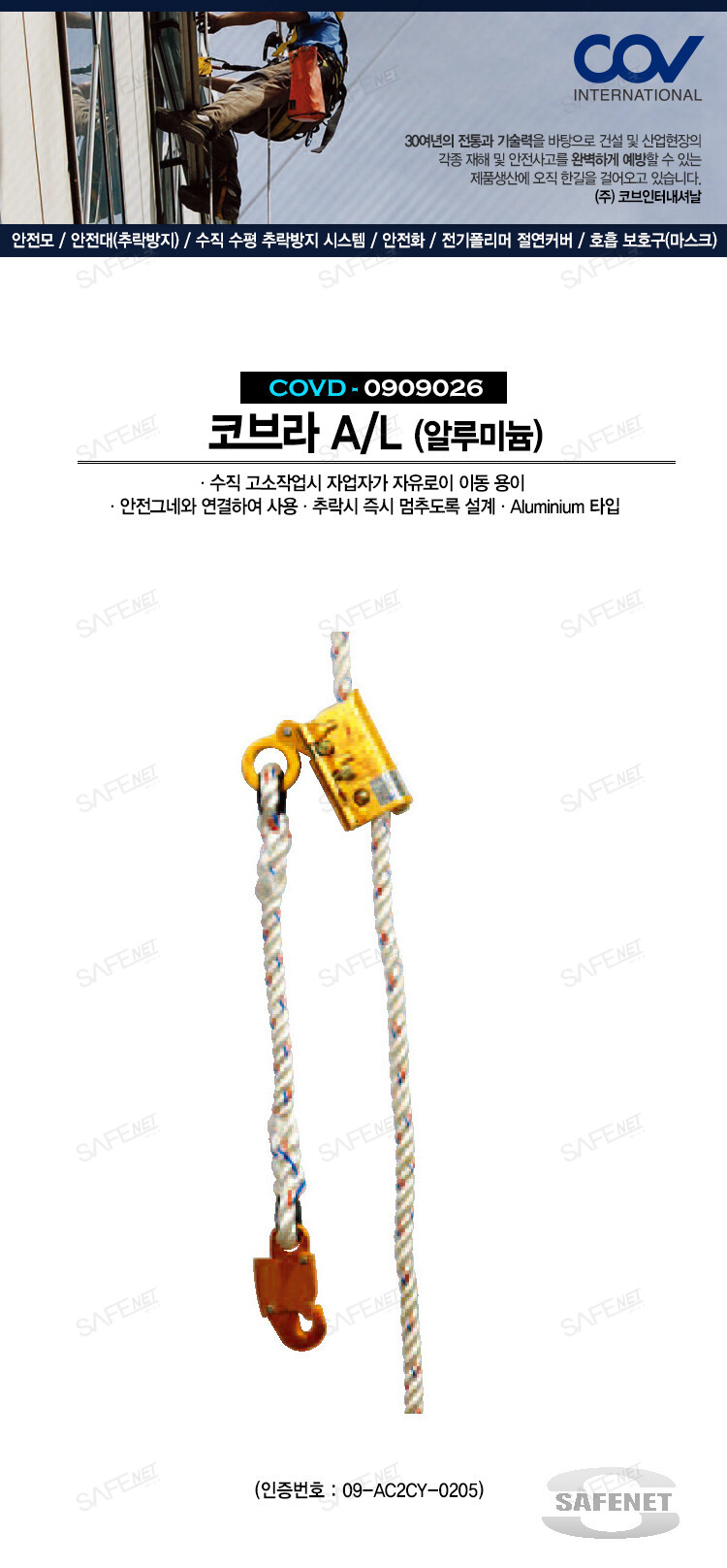 - 안전그네와 연결하여 사용하며 추락시 즉시 멈추도록 설계
