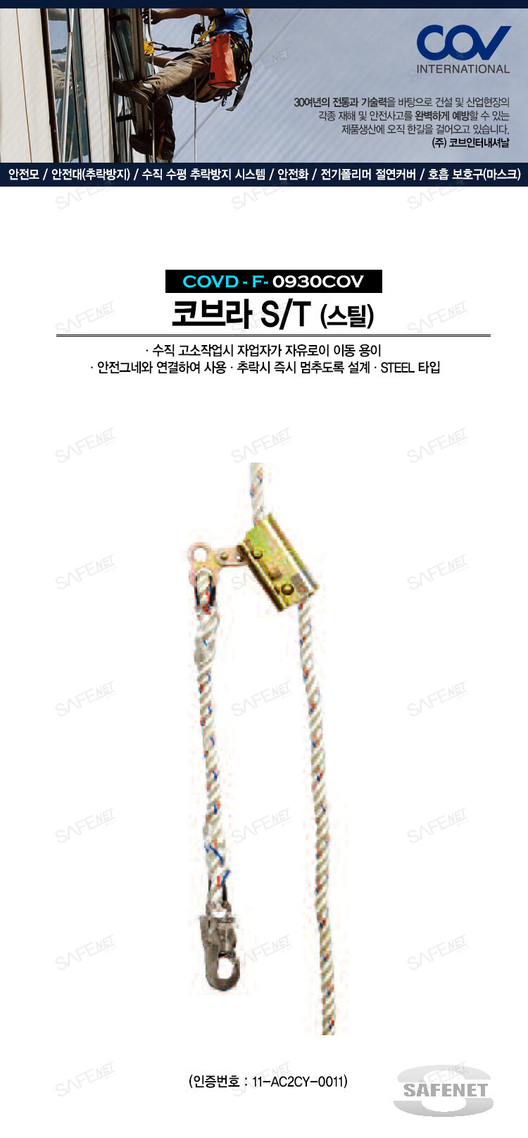 - 안전그네와 연결하여 사용하며 추락시 즉시 멈추도록 설계