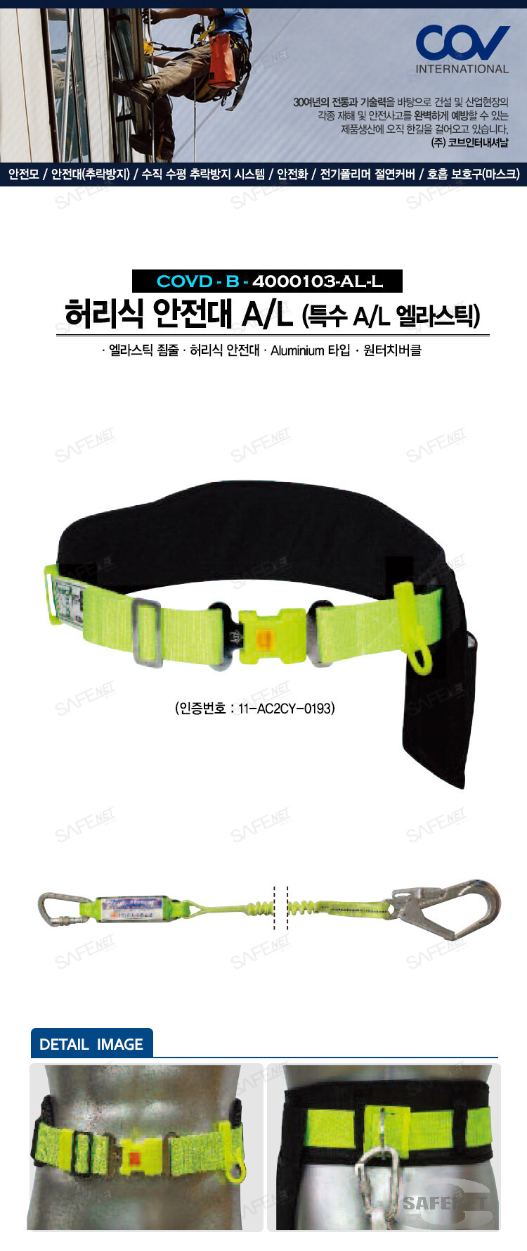 규격 : 엘라스틱 죔줄, 허리식 안전대, 알루미늄타입