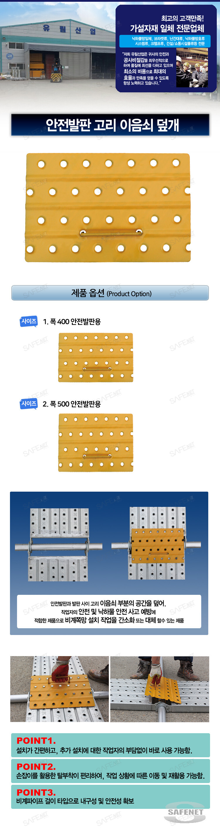 -안전발판과 발판 사이 고리 이음쇠 부분의 공간을 덮어작업자의 안전 및 낙하물 안전 사고 예방에 적합한 제품임.