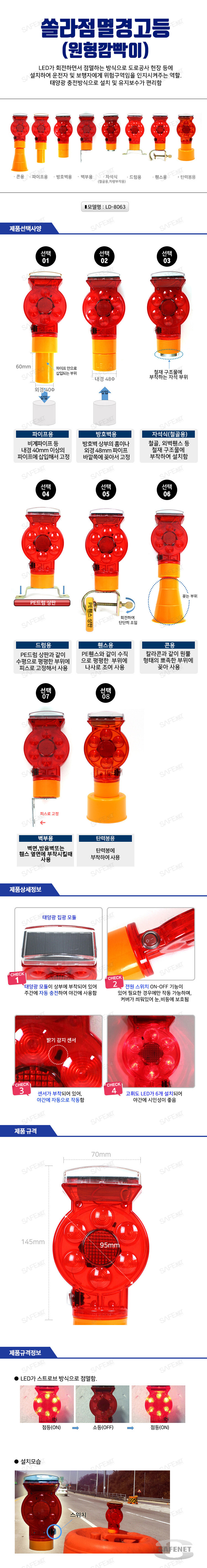 규격 태양광충전식 / Φ95 / LED 6개 / LED가 일괄점멸 방식으로 작동
