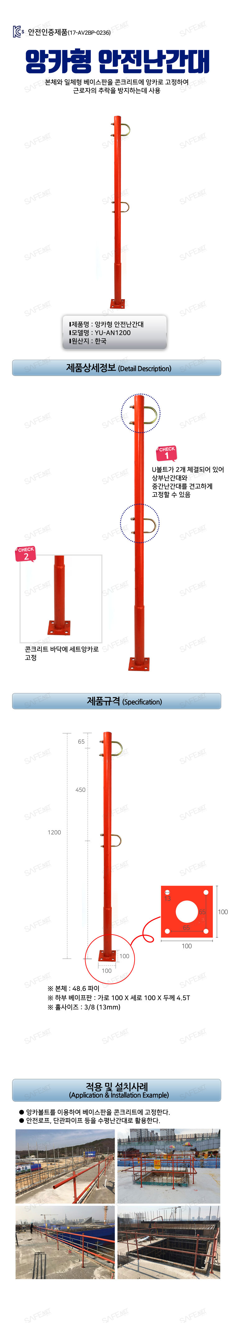 규격 높이 1200mm, 앙카고정방식, U볼트포함, 앙카볼트제외