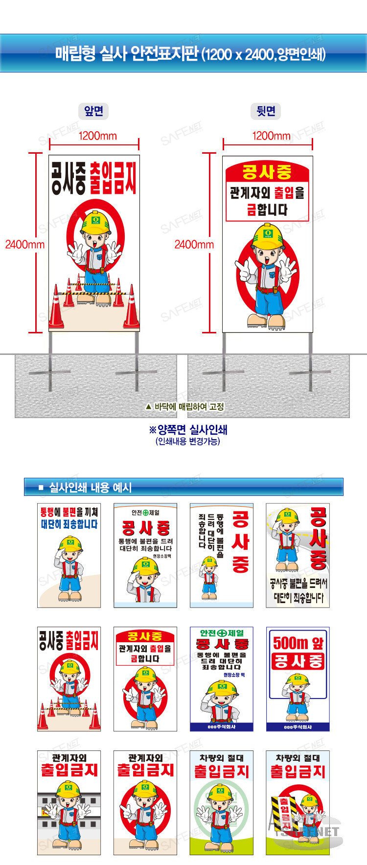 매립형 실사안전표지판(1200*2400, 양면인쇄)