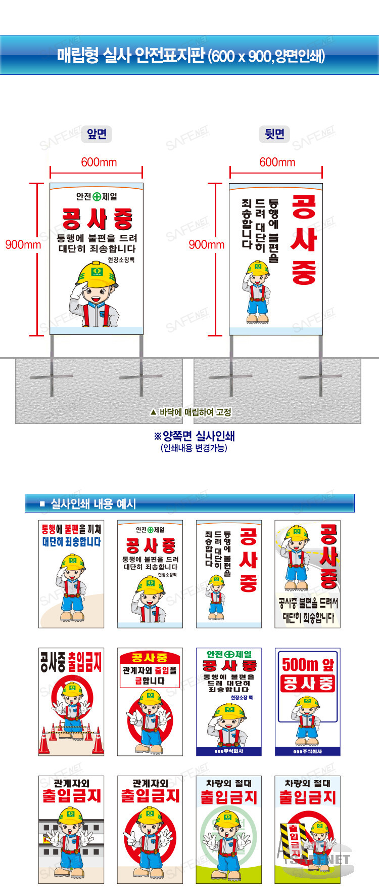 매립형 실사안전표지판(600*900, 양면인쇄)