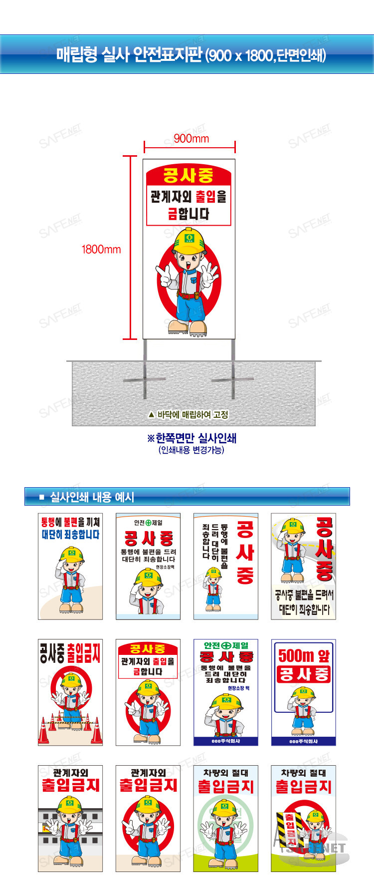 매립형 실사안전표지판(900*1800, 단면인쇄)