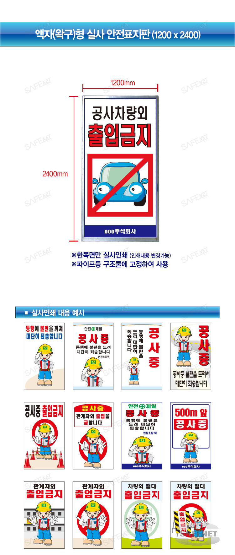 규격 W1200 X H2400mm 액자(왁구)형 단면실사인쇄