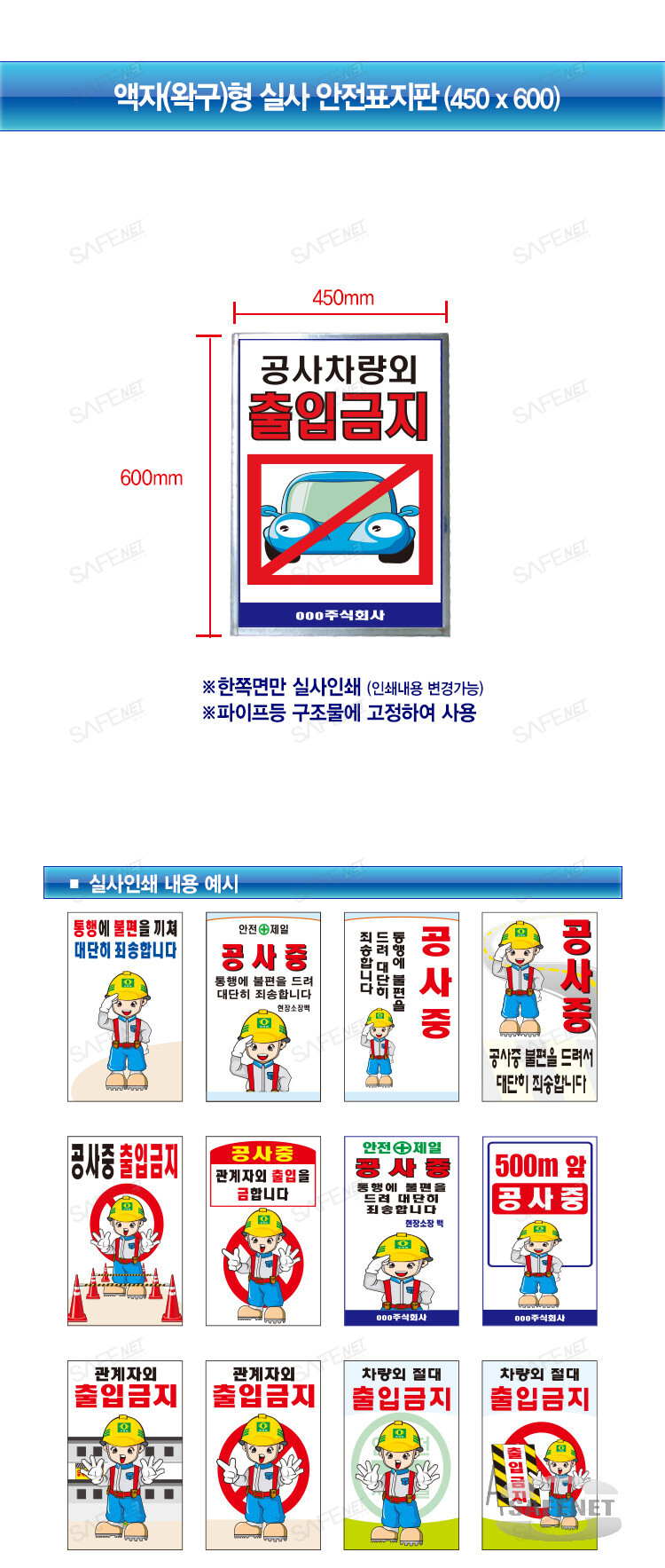 액자형 실사안전표지판(450*600)