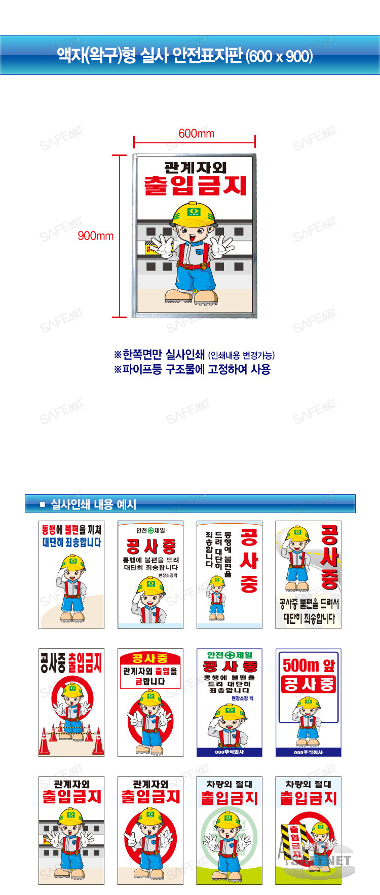 액자형 실사안전표지판(600*900)