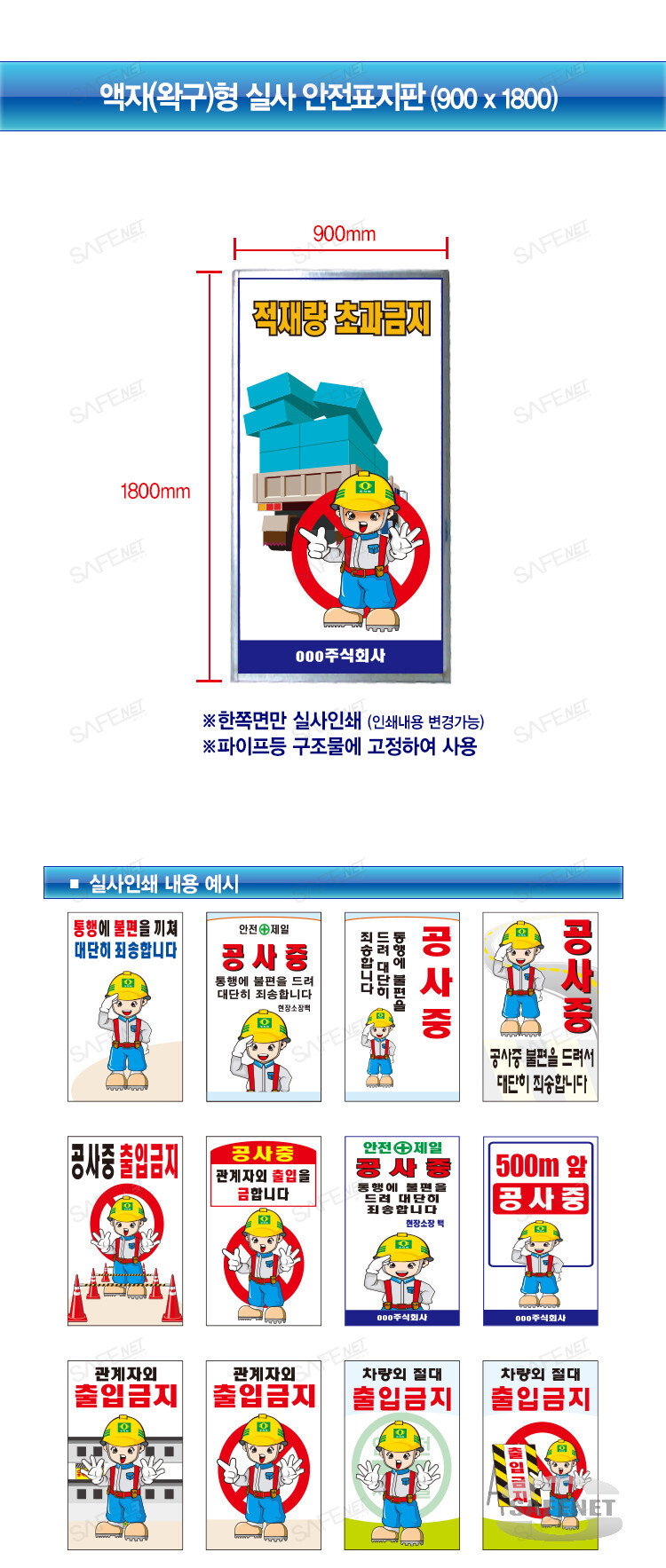 규격 W900 X H1800mm 액자(왁구)형 단면실사인쇄