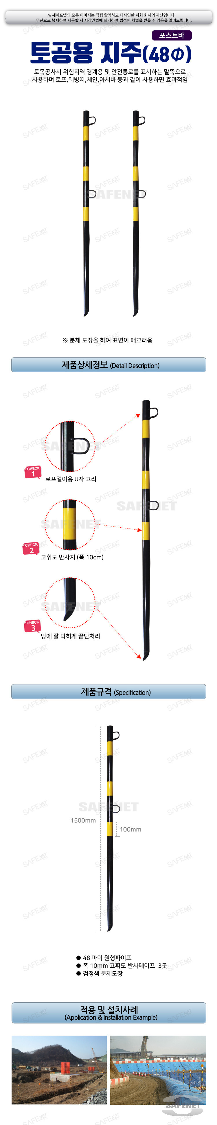 규격 Φ48 X 1500mm, 반사지3중, U자고리2개