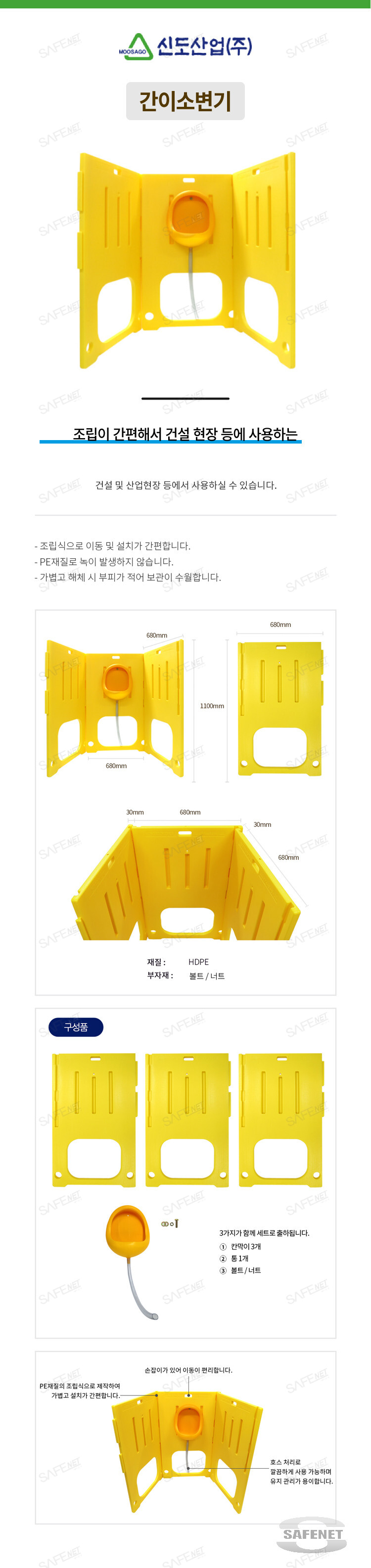 규격 W680 X L680 X H1100mm / 소변기 포함