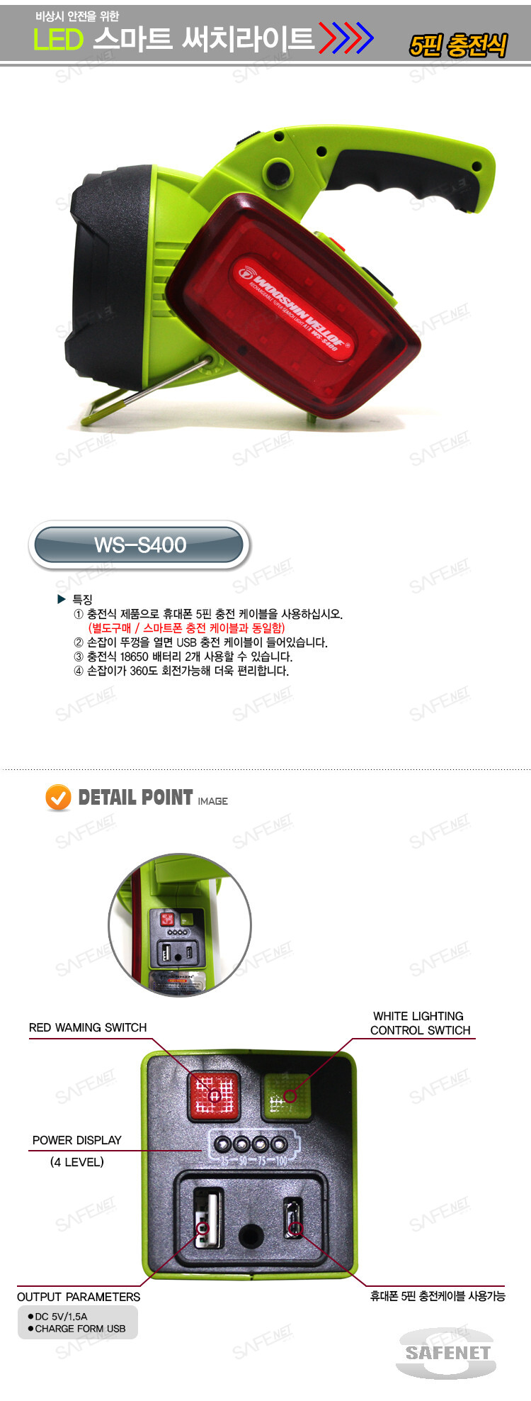 규격 5핀충전식/손잡이360도 회전랜턴/USB충전