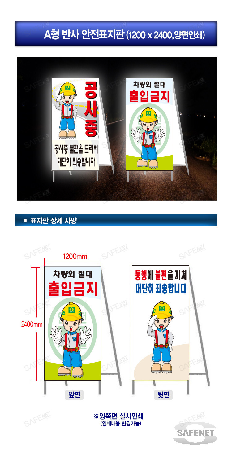 A형반사안전표지판(1200X2400, 양면)
