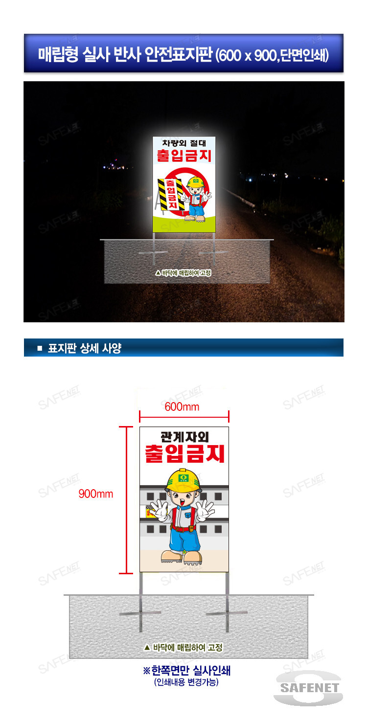 매립형반사안전표지판(600*900,단면반사)