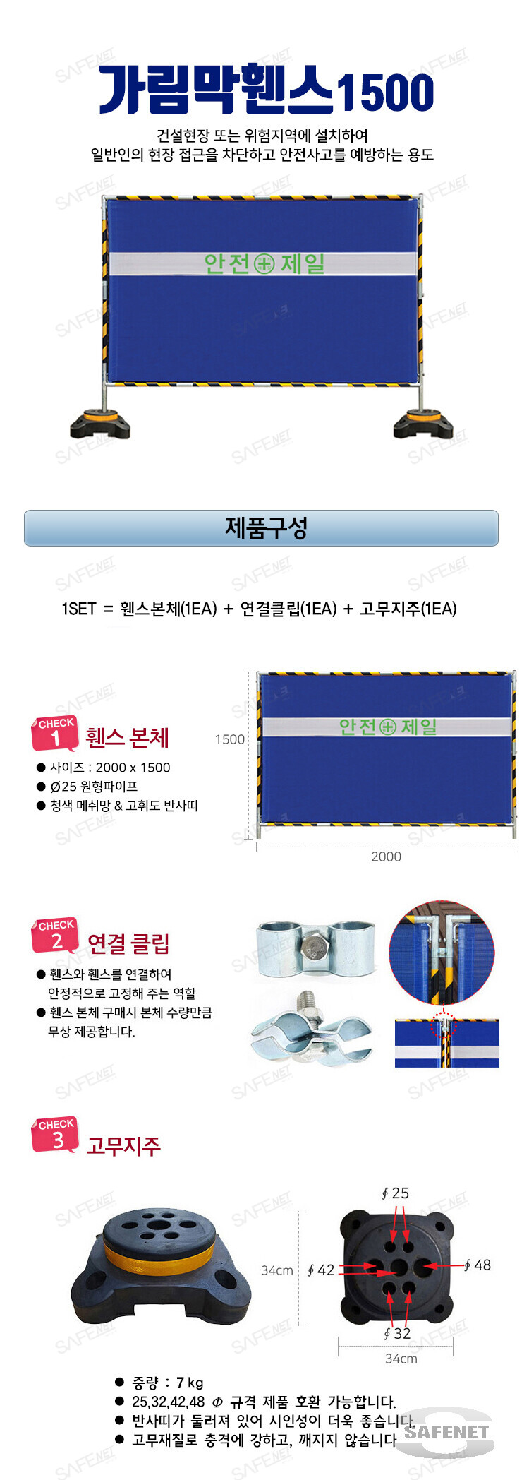 규격 H1500 X W2000mm / 1단 / 청색메쉬망 / 반사지 / 안전제일인쇄