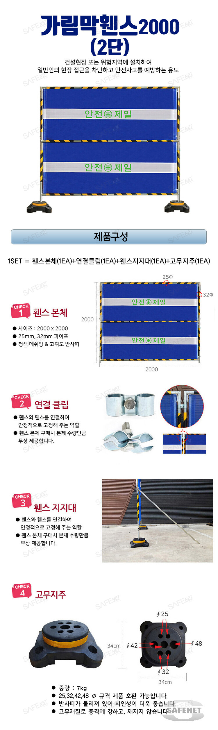 규격 H2000 X W2000mm / 2단 / 청색메쉬망 / 반사지 / 안전제일인쇄