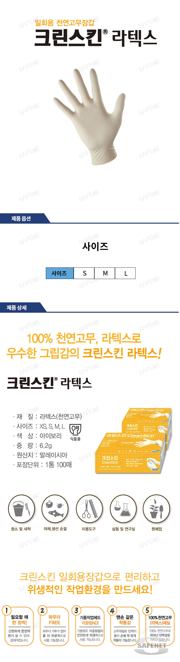 모델명 크린스킨 라텍스 일회용 고무장갑