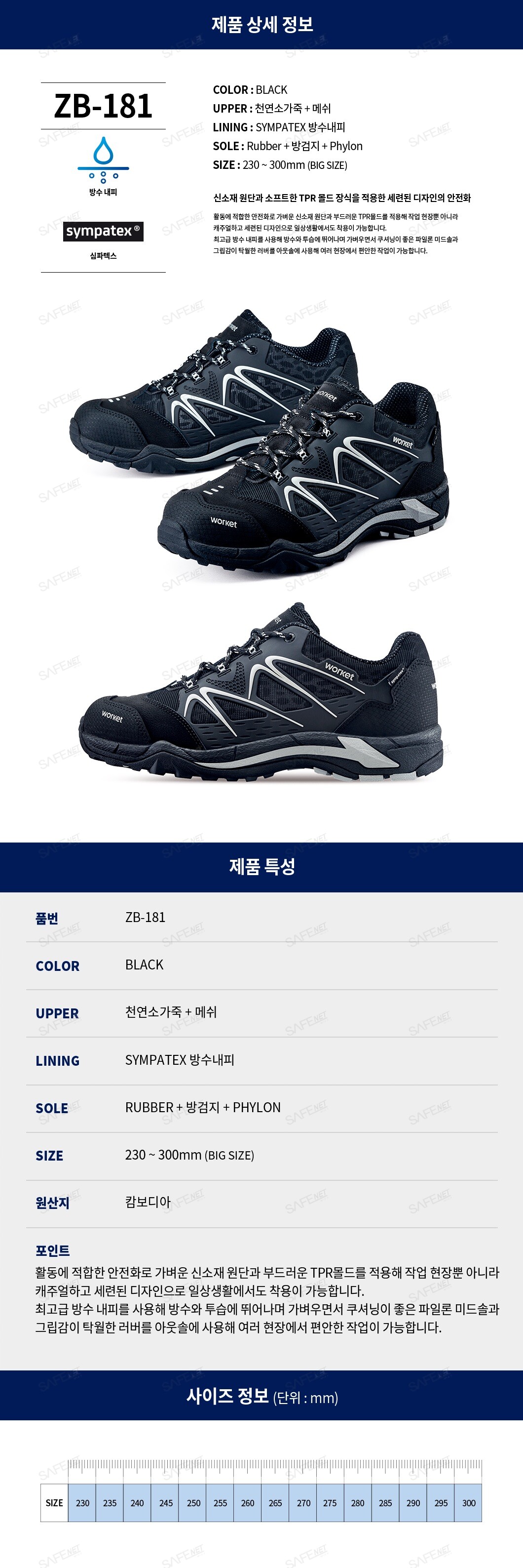 규격 4인치 / 끈타입 / 심파텍스 방수내피 / 방검지솔 / 230~285mm