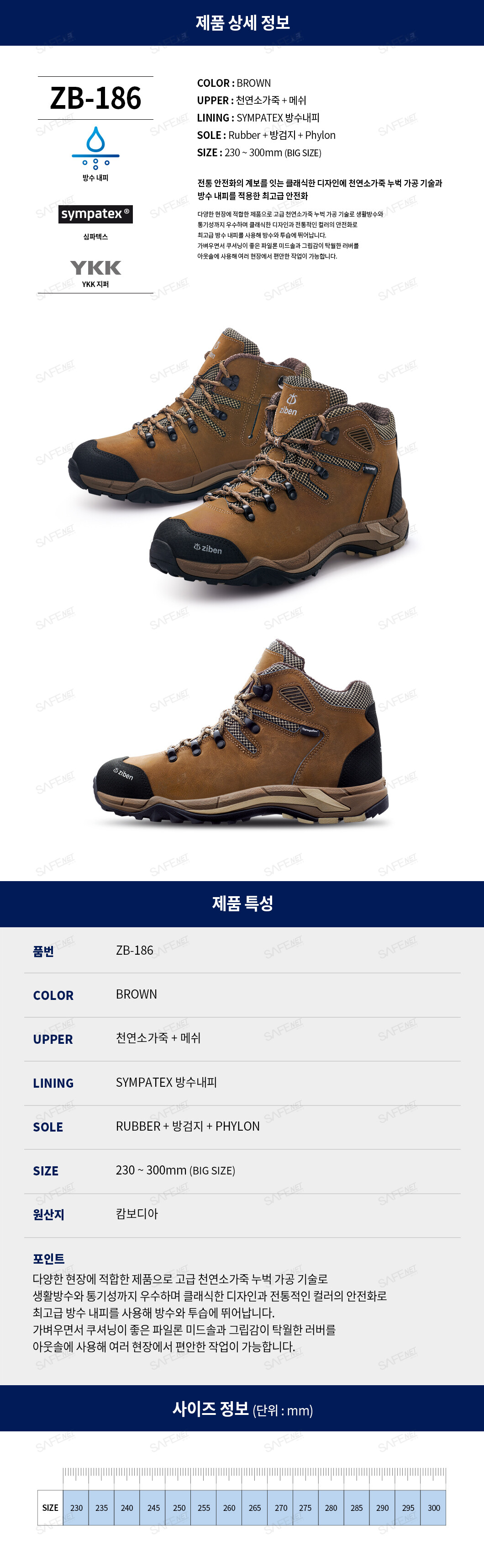 규격 6인치 / 지퍼타입 / 천연소가죽누벅 / 심파텍스 방수내피 / 방검지솔 / 230~300mm