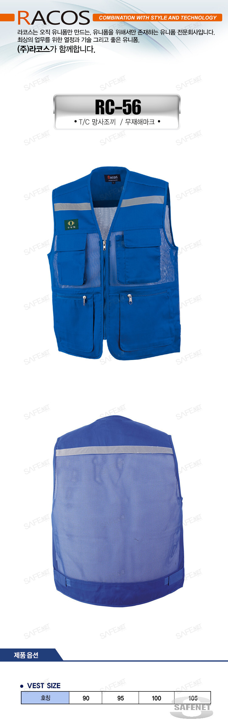 규격 파랑색 / 여름용 / 앞면일부,후면전체 망사재질 / 무재해마크 / 반사띠