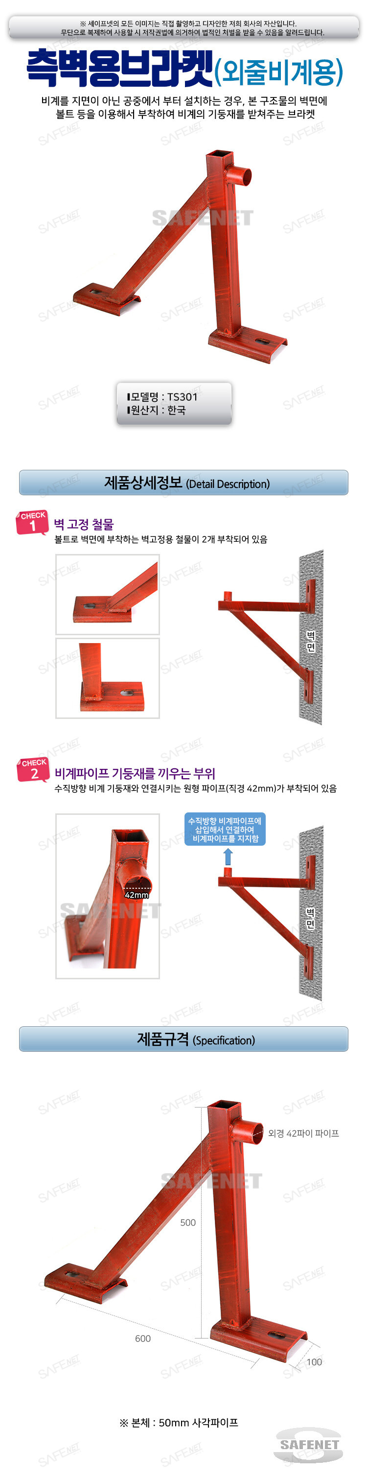 측벽용브라켓(외줄비계용), 외줄비계용측벽브라켓 TS301